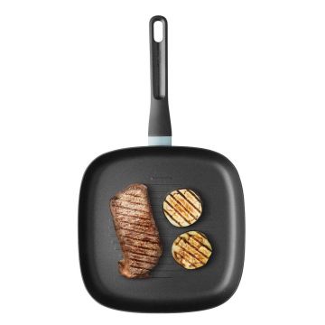 Aceasta tigaie are dimensiunea perfecta pentru a pregati masa zilnica pentru doua persoane. Cu corpul sau din aluminiu 100% reciclat, care garanteaza o distributie rapida si uniforma a caldurii si un strat antiaderent ceramic de inalta calitate, durabil si sanatos, care va permite sa gatiti cu putin sau deloc ulei. Aceasta tigaie asigura o performanta eficienta din punct de vedere energetic pe orice tip de plita, inclusiv pe inductie. In plus, manerul rezistent si moale la atingere asigura o buna prindere, astfel incat sa puteti duce in siguranta tigaia de la plita la masa pentru a o servi. Dimensiuni interioare 24 x 24 x 4 cm. Dimensiuni exterioare 42 x 24.5 x 5.5 cm.
