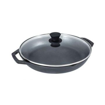 Tigaie adanca rotunda din fonta cu manere si capac de sticla Chef Collection Lodge 30 cm L-C12EP